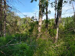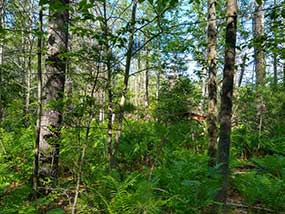 The approximately 5-acre Douglas property was donated to Ashby Land Trust by the Douglas family in early 2019. The property is located on the east side of Route 31 and is managed for wildlife habitat. There are no trails on the property and no convenient parking. The property is densely vegetated, grading from woods in the east to forested wetlands in the central portion to open water at the rear of the property.